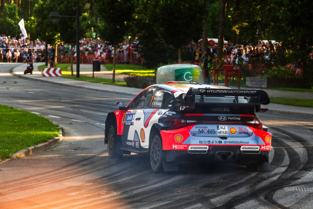 Solberg mögött nem kevesebb, mint három világbajnok áll, élükön a 2019-es bajnok Ott Tänakkal. A helyi kedvenc, aki egy Hyundai i20 N Rally1-et vezet, csapatársával, Thierry Neuville-lel vív heves párharcot a második helyért. A páros a nap folyamán hatszor cserélt helyet, végül Tänak mindössze 4,0 másodperccel előzte meg a belgát.